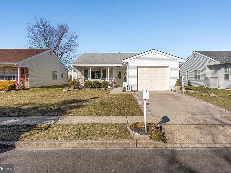 Welcome to our cozy 2-bedroom home located in the tranquil community of Leisuretowne in Southampton, NJ. Upon entering this open floor plan Gladwyn model, you'll find a charming living room with plenty of natural light and ample space for relaxation. The adjoining dining room provides an ideal setting for family meals or entertaining guests. The kitchen features modern appliances and ample cabinet space for all your storage needs. There are granite counter tops with an eating area with pendant lights and under cabinet lighting. The primary bedroom boasts a spacious layout with an updated ½ bathroom, offering both comfort and privacy. The second bedroom is equally well-appointed and is ideal for a guest room or home office. Additional highlights of this home include a relaxing extended porch, perfect for enjoying the beautiful outdoors, and a one-car garage and storage shed for your convenience. There is also a sprinkler system. Updates include Newer roof, stacks and gutters in 2017, Attic Fan in 2017, New A/C Unit in 2020, New Pella Storm Door and New Electric Panel in 2021, New Garage Door Springs, Roll out Awning added in 2022 along with pavers to extend the back patio. A new Digital thermostat and freshly painted exterior make this home a move in ready option. **Seller has agreed to pay one year of HOA dues for buyer with full price offer** Leisuretowne offers a range of amenities, including a swimming pools, clubhouse, fitness center, and more, making it an ideal location for active adults seeking a vibrant community. Don't miss the opportunity to make this charming home yours. Schedule a showing today and experience the best of Leisuretowne living.