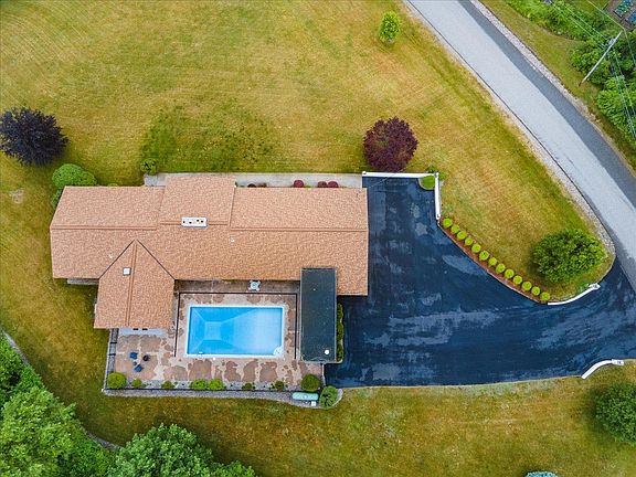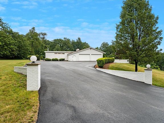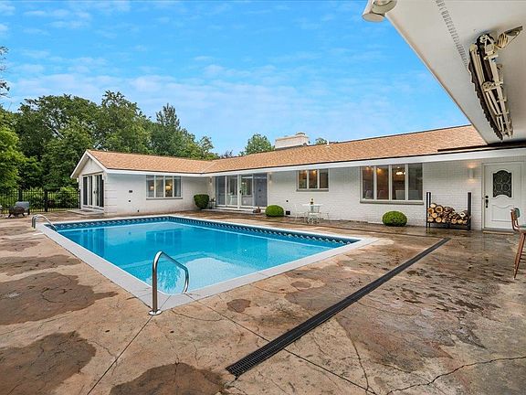 This recently refreshed Bedford gem is a rambling ranch with art deco features that exude quality and craftsmanship. Ranch style homes of this size, quality and style are a rare find in NH. The expansive driveway provides ample room for many vehicles or use it as a play area for pickleball, basketball...you decide. Perched on top of a gently sloping hill, this home features 4 bedrooms and 5 baths providing AMAZING VIEWS from every direction be it the living room and dining rooms facing the mountains in the distance or the primary bedroom, kitchen and family room offering direct access to the oversized pool and outdoor kitchen. Summer time fun can be enjoyed by many in this pool oasis with outdoor kitchen and 3/4 bathroom. More entertaining space available in the partially finished basement with wet bar and 1/2 bath. Ample storage space with built-in shelving available in the unfinished portion of the basement. As spacious as this home is, it is also warm, comfortable and inviting. Don't miss your opportunity to live in this special home in highly sought after Bedford, NH.