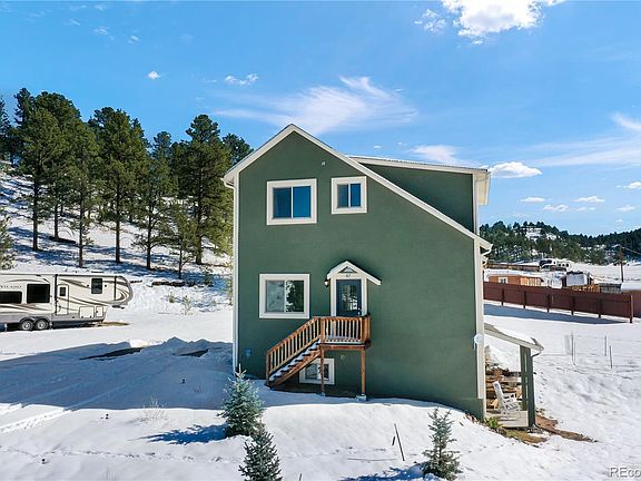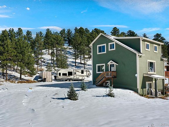 Welcome to your dream home! This stunning 3-bedroom, 3-bathroom residence boasts 2,688 square feet of modern comfort nestled within a beautifully wooded area, offering serene privacy and breathtaking views from every window. Situated on over an acre of lush land, this nearly-new home features a spacious loft and a large deck perfect for relaxation or entertaining guests. Enjoy the cozy ambiance of a fireplace and the convenience of being close to town, shopping, and restaurants. The finished walk-out basement is creatively designed, complete with plumbing for a wet bar, plus two unfinished rooms ideal for future bedrooms. Outdoors, the property includes full RV hookups with 220V, water, and sewer connections and a unique 9x40 storage conex built into the hill, ensuring ample on-site storage. With low taxes and no HOA, this is the perfect haven for those seeking tranquility and convenience. Don’t miss this opportunity to own a slice of Colorado paradise!