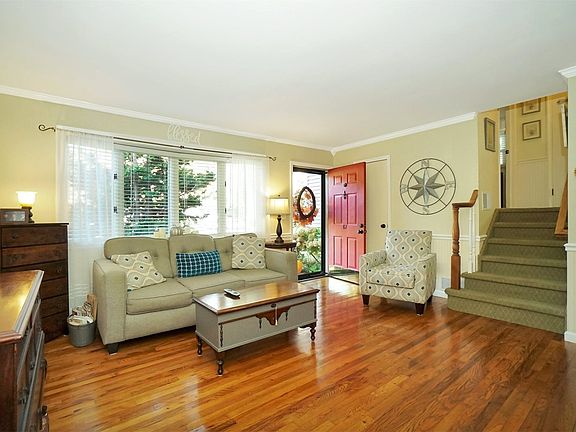 Side to Side Split Level has been expanded and dormered. A Large Eat-In-Kitchen with skylights offers sliders to a rear deck and professionally landscaped yard. The main level also provides a living room with a bow window. A few steps down leads you to a bright den with access to laundry and utilities room. The two guest bedrooms and hall bath occupy their own level and a few steps up brings you to the primary bedroom with walk-in-closet and full bath. The out door space is immaculate! Large deck surrounded by mature plantings and hidden spaces to enjoy privacy. Come Home!