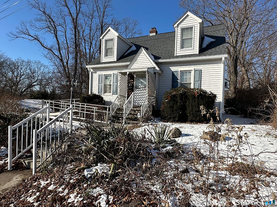 Dormered Cape located in the desirable Hopeville section of Waterbury featuring 6 rooms, 3 spacious bedrooms and 1 & 1/2 baths. The main level has a living room with hardwood floors open to the eat-in kitchen, dining room with built-ins and a closet (which can be used as a 4th bedroom), the primary bedroom and a full bathroom with a walk-in shower. 2nd level has two bedrooms with built-ins and plenty of closet space and a half bathroom. Walkout basement. New oil tank. Updated 100 amp electrical service. Architectural shingled roof and vinyl siding are approx 5 years old. Parking for 6+ cars in the oversized driveway. Absolutely stunning .44 acre yard located on a dead end street. Close to Washington Park with a new public pool, basketball court, fields, walking trails, ect...Minutes to I-84. Sold as-is. Conventional, rehab loans or cash only. A little work will make this home shine!