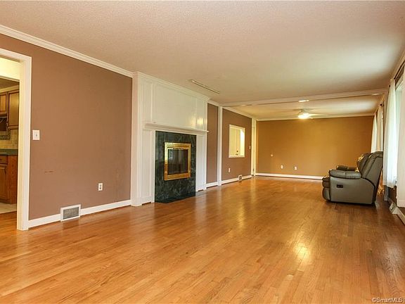 ROOM FOR EVERYONE! And a great location with easy commuting! Expansive colonial move-in ready!! Enter the home into a welcoming foyer with tile floors. Over-sized Living room with see through fireplace with extra trim work detail and gleaming hardwood floors. Living room/dining room area opens to a WOW kitchen; large and has lots of counters - huge eat-in space with pretty brick see-through fireplace. You cant help but be impressed by the over-sized nature of these rooms! You can easily make these rooms function as you wish - there is that much flexibility here. There are 2 bedrooms on the first floor - one has a huge en-suite with large walk in tiled shower. Enjoy the first floor laundry with loads of storage. The guest half bath is off the hallway by laundry area. The 2nd floor has 3 bedrooms serviced by a beautifully updated tile bathroom. The master bedroom is large with attached dressing room with built-ins. There is attic access from the master too. Decks from bedroom - too! The lower level is very large - unfinished and ready for further expansion. The beautiful deck was recently painted overlooks the private back yard that has open lawn area and a wooded area. Enjoy the covered deck too! You will love this house and the outdoors no matter the weather. The house also features solar panels - great to reduce electric bills!! Fall in love - Make an offer!!