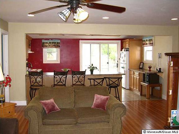 BEAUTIFULLY RENOVATED COLONIAL IN THE BELFORD SECTION OF MIDDLETOWN 07718~RECENTLY UPDATED EAT-IN KITCHEN~NEWER FULL BATH~GORGEOUS NEWER FLOORS~AWESOME KITCHEN WITH HUGE PENINSULA, MAPLE CABINETS, NEUTRAL COUNTERTOPS~GREAT SIZED LIVING ROOM W/CEILING FAN IS OPEN TO DINING & KITCHEN W/SLIDING GLASS DOORS TO REAR DECK~LAUNDRY ROOM, 1 BEDROOM & OFFICE ALSO ON 1ST FLOOR~MASTER BEDROOM W/HARDWOOD FLOORS&2 MORE BEDROOMS ON 2ND LEVEL~GREAT HOUSE~GREAT PRICE~AHS HOME WARRANTY INCL.~CLOSE TO FERRY TO NYC