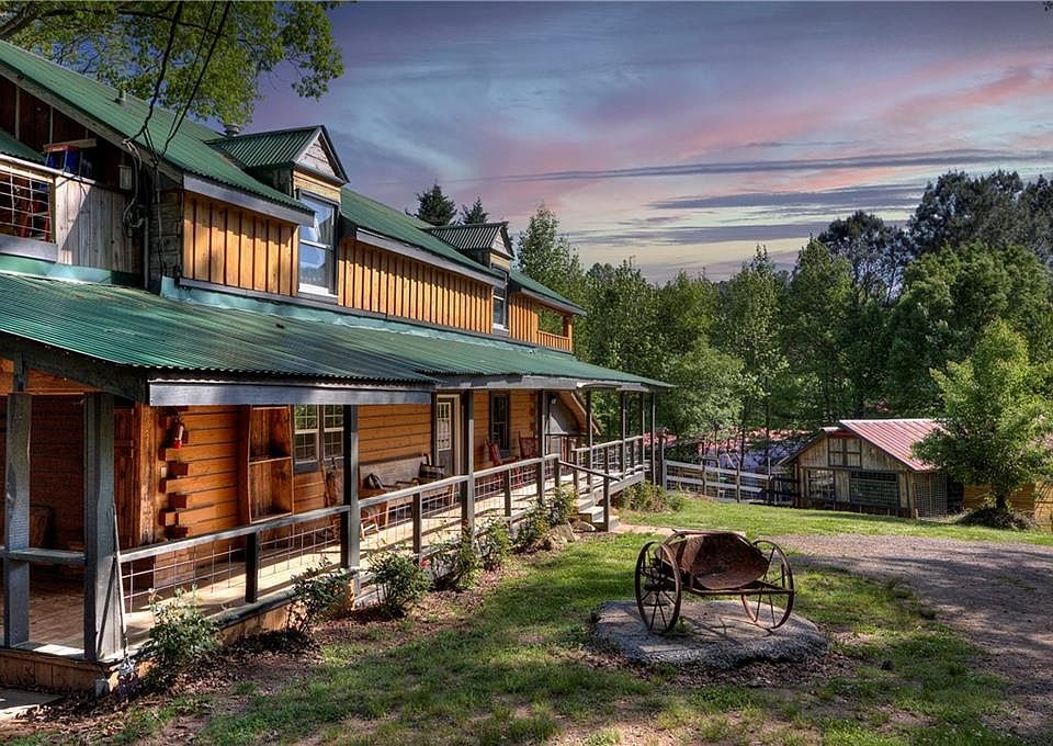 Back to Nature with this log home situated on 3 plus acres. The large front porch welcomes you into this rustic country home featuring a sprawling great room with a wall of windows which puts nature right at your finger tips The kitchen will surprise you with its' granite counter tops and cabinets galore. The upper level is the entire owner's suite with the bedroom and bath on one side and a huge sitting room with a morning bar or kitchen area on the other side. All of this opens up with a wall of windows to a covered back porch overlooking the beautiful wooded back yard. There is so much outdoor living here, not only the covered back porch, but covered side porch on one end and an open deck on the other end. Wild life is abundant here and there is no HOA so farm animals welcome. The yard boast fruit trees and a grape vineyard along with raised beds for planting. There are outbuildings, sheds and barns enough for all of your garden supplies and equipment and maybe a grown up toy or two. This home is just off of Highway 20, so convenient to shopping, schools and oh so close to Lake Allatoona and just a few exits away from Lake Point at Emerson. New Mini Split on main level, new carpet on upper level, new paint on the interior upper level. Square footage on tax records is not accurate. Sold "AS IS" but will allow inspections and due diligence. Cash, Conventional or Hard Money Financing only.