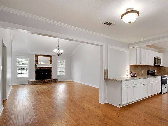 Extremely spacious 3BR/2BA featuring new Granite countertops in kitchen and baths, Hardwood, vinyl plank, and Travertine flooring, new cabinets, roof, gutters, and doors. New lights, fans, electrical panel, HVAC system, water heater, stainless appliances, and fixtures! Brand new enclosed heated and cooled sunroom with skylights and new windows. Huge living area with vaulted ceilings and large fireplace with wood burning insert. 2 new custome ceramic surround baths with HUGE walk in shower in master along with double vanity in master, new mirrors, and undermount sinks. Fenced in backyard with 2 large shops! One shop is wired with electricity and can be used as a working shop. One year home warranty included! All in the desirable Crossgates neighborhood with neighborhood lake and pool!