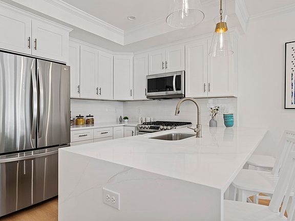 Introducing Village View. This new construction building, comprising of twelve 2 bed, 2 bath units, delivers on every necessity a buyer desires from the garage parking with elevator access, to the dedicated storage space for each unit. Modern layouts, thoughtfully designed by Corvo Construction, feature open concepts with a plentitude of Pella windows allowing for an abundance of natural light to pour through and wide plank composite flooring designed for resilience. Kitchens consist of quartz counters with waterfall-edged peninsula, stainless steel wi-fi enabled appliance package, counter seating, and custom cabinetry. The primary bedroom boasts a walk-in closet and en-suite fitted with double vanity and shower wrapped in a stylish tile, a rain-head with Grohe Smart Valve and cleansing body jets. The secondary bedroom has generous closet space complimented by a full bath with penny tile flooring and a textured tiled tub surround. Dedicated laundry room with additional closet space.
