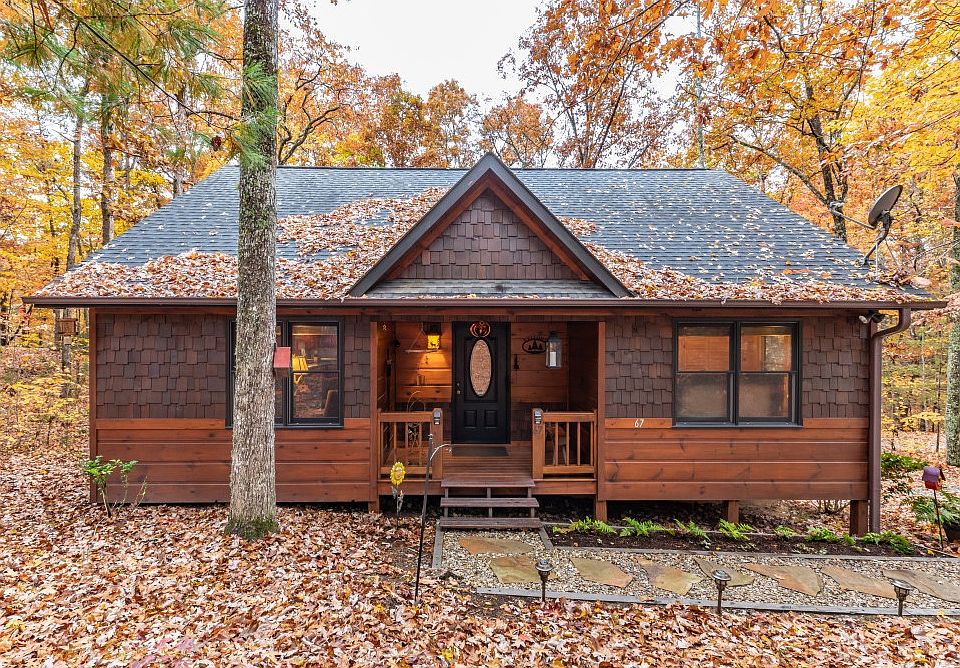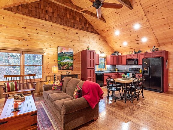 If it's always been your dream to own your own cabin in the mountains, HERE IT IS! From the moment you pull up, you'll fall in love with the rustic wood panel & shake exterior, the symmetry of the house, & the well-groomed landscaping. The vaulted LR/eat-in KITCH welcome you with open space and lots of windows to let in the sunlight. Stacked stone gas FP (propane) in LR. Custom kitchen cabinets. Wood paneled walls/ ceilings, ceiling fans, & wood blinds throughout. Hdwd floors throughout except BRs (carpet) & BAs (tile). Vaulted BRs w/ mini split in owner's suite. New H20 heater in G20. Cedar storage shed w/ underneath storage. Circular driveway on corner lot w/ lots of hardwoods. Added deck w/ fire table & electrical but strong enough to add a hot tub. Underground utilities & electric HVAC/heat pump. This home was a 2nd home and is very well maintained with little to no wear.