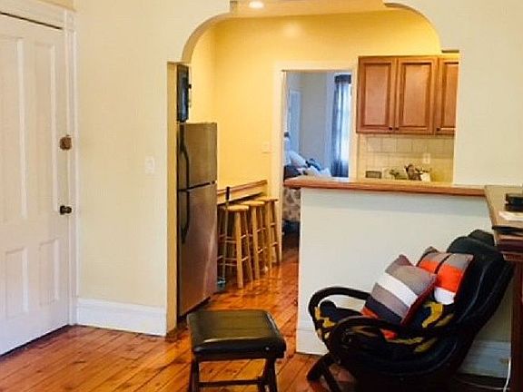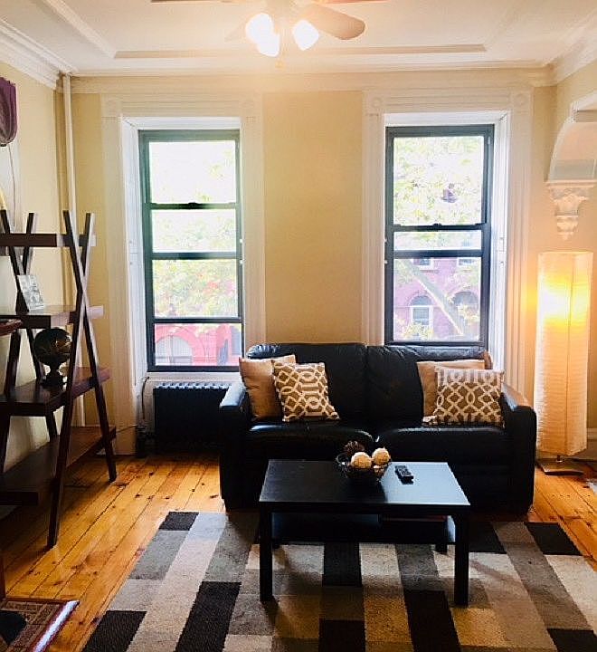 SHORT TERM . Welcome to 67 Decatur Street your home away from home. This beautifully FURNISHED/ SHORT TERM 1 bedroom apartment spans for an entire floor of a brownstone. Living here you will enjoy all the advantages of Brooklyn Brownstone Living. There are restored original plank floors throughout the apartment. The 6 over-sized windows, encased in classics pre-war decorative molding and original shutters, offer exposure from the north and south. There is also an original decorative mantle which has been meticulously restored. This apartment also feature a dinning alcove with a 4 seated dinning set. The living area features a rich leather love seat set and chair with ottoman. There is a flat screen and WIFI. Living here you will also enjoy a large open Chef's kitchen with stainless steel appliances including dishwasher and microwave. There is also a tiled breakfast bar with 4 stools. The bedroom is large with ample space for queen-sized bedroom set and lounge seating. The bathroom is adorned with subway tile and a claw foot soak tube, essential for relaxation. Living here you can enjoy all the restaurants, shops, entertainment and recreation that Historic Bedford Stuyvesant has to offer. It is close to the A subway express train at Nostrand Ave. which is 1 stop to downtown Brooklyn ,4 stops to Manhattan. It is also close to the C subway train at Throop Ave. Available for short term rental.