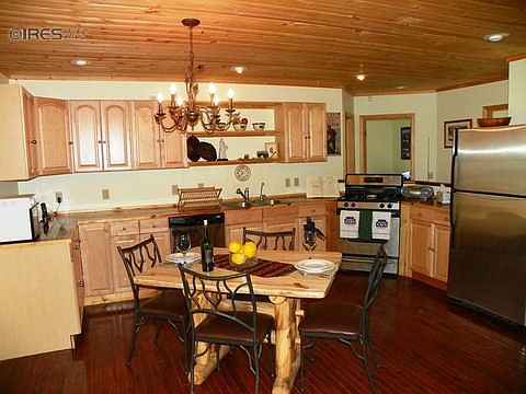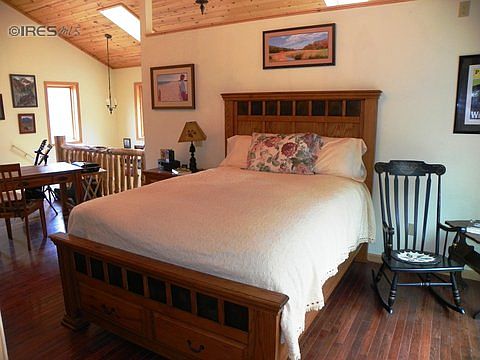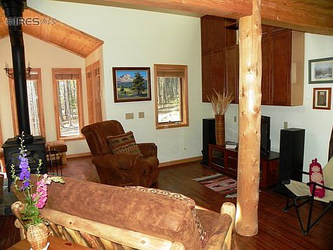 Amazing green construction & stunning craftsmanship views, unbeatable location, 1/3 mile from Longs Peak Trail head in National Park. Photo Voltaic Solar System provides all the electricity for this home. Open floor plan, vaulted wood ceilings, wood floors, loaded w/natural light. In floor radiant heat, plus a high efficiency wood stove. Full basement is ready for a family room, 2+ garage addition. Peaceful setting with outstanding views of Twin Sisters. Generator included.