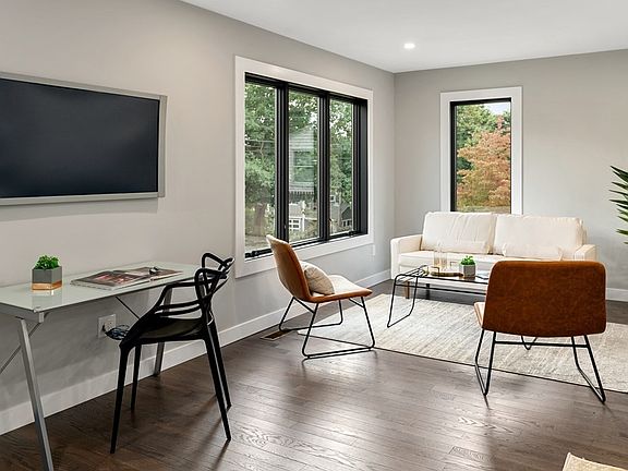 Your search for a home different from the rest is over! With stunning contemporary design and incredible material choices you'll be impressed from the minute you step inside.This 4 bedroom, 5 bath home near Stratton school has been completely redesigned and expanded by Arlington design/build firm, Villandry Contracting. Perfect blend of open floorplan and separate spaces for working/studying at home begins with incredible kitchen/dining/living area anchored by a chef's kitchen boasting sleek cabinetry, island, white quartz counters and high end stainless appliances. Enjoy alfresco dining on private patio. A few steps up to living room featuring gas fireplace with gorgeous slate surround, bedroom & full bath. Master bedroom suite with luxurious bath & customized walk in closet/dressing room. 2 additional bedrooms (one with its own bathroom), laundry and full bath. Views of the Boston skyline from 3rd floor office. LL playroom, mudroom, full bath & access to garage w/electric car charger