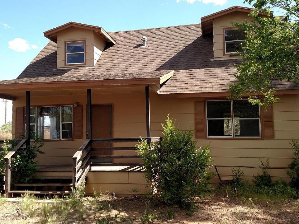 GREAT POTENTIAL IN THIS CABIN-STYLE HOME on over half an acre. Well-located 3 bedroom 2 bath fixer-upper in the heart of Snowflake on .53 acre that is zoned Residential Transitional -- so that a business could also be placed here! Fully fenced. Solid knotty pine paneling upstairs and a pleasant little grove of trees in front. Master bedroom & bath is downstairs; natural gas space heater. Plenty of room on the lot to add a building!
