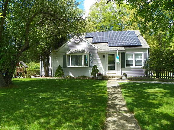 Much bigger than it looks at first glance and far more energy efficient than you might imagine! Adorable 4 bedroom 2 bath Cape style home with many updates including kitchen, baths, floors, ductless air conditioning/heating system. Two bedrooms and a full bath are on the main floor and the master bedroom and an additional bedroom plus a full bath are on the second level. Formal dining room leads to a large screened-in three-season room that perfectly expands the entertainment space. Includes a small seasonal stream that meanders across the back of the property. The fourth bedroom with the private viewing deck is currently being used as an office. Sitting on just under an acre, this property has nice-size front, back and side yards and has a natural bush border along the front, making it difficult to see from the street. Ductless air conditioning and heating system help defray oil heating costs in the winter. Itemized list of updates is attached. Centrally located off of Route 9G, close to shopping, restaurants, recreation, and Historic Hyde Park. Priced to sell.