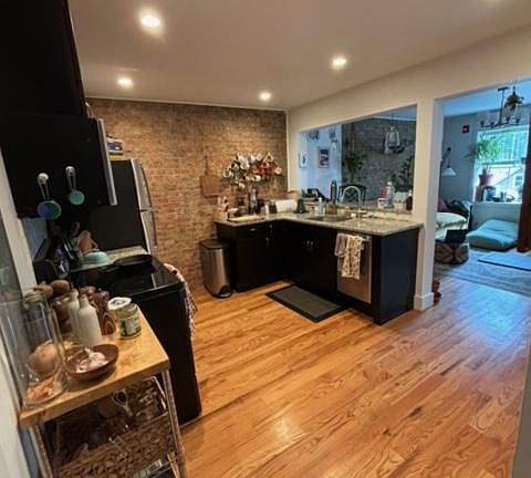 Split-level beautiful brick-walled apartment in the heart of Beacon! Tastefully remodeled apartment building that drips with natural light and hosts a backyard area, shared laundry, an attached storage unit and a parking lot. Walkable from main street and all of its amenities, close to multiple hiking routes, and a 5-minute drive to Metronorth station (and right next to a bus stop for the free bus that also takes you around town and to the train station). 1 bedroom, 1.5 bath, walk-in closet, central air and heating, new appliances. Pet friendly (2 pet max). Lease start August 12th. Come check it out for yourself! Owner pays for water. Renter pays for electric and internet. Pets allowed up to 40 lbs (nonrefundable pet fee of $300 and $25/month addition to rent per pet). Security deposit equivalent to one month's rent due at lease signing.