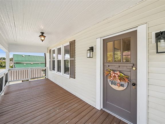 Welcome to 67 Elizabeth St. This fully renovated 3 bed home is designed for comfort and style, featuring a modern 10x13 kitchen equipped with granite countertops, a gas stove, microwave, fridge, and a dedicated coffee bar. Stylish blue cabinets with brushed gold fixtures and floating shelves add a chic flair, paired with durable flooring. The spacious 12x14 dining room flows into a 16x14 living area, perfect for gatherings and relaxation. The main level includes a convenient half bath, while the second floor boasts a full bath and plush new carpeting throughout. Three bedrooms provide versatile living spaces, and an open attic offers additional storage or potential for future expansion. The home features gas-forced air heating, ensuring comfort year-round. Outside, enjoy a covered rear patio (10x27) ideal for entertaining, and a welcoming front porch perfect for relaxing.This home combines modern amenities with classic charm, creating an inviting and move-in-ready space for any family.