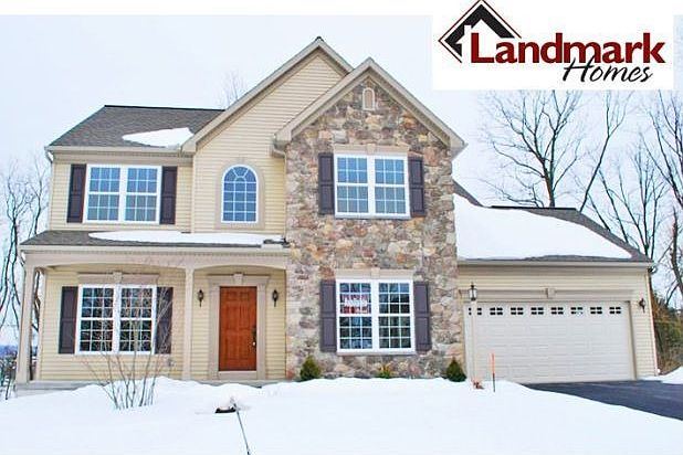 This under construction home is the "Oakmere" plan by Landmark Homes, and is located in the community of The Falcon Crest at 67 Falcon Cr, Lebanon, PA-17042. This 2-story home with an insulated 2-car garage and flexible living space options also features:*Welcoming front porch with decorative posts*Dramatic 2-story ceilings and hardwood flooring in Foyer*Heightened 9' ceilings on first floor*Finished Bonus Room on second floor can serve as a 4th bedroom or rec room*Formal Living Room and Dining Room, plus a large Family Room with cozy gas fireplace*Spacious Kitchen includes an island with a raised bar top and is open to a large Breakfast Area with plenty of natural light*Elegant tray ceiling and trim detail in Dining Room *Master Bedroom suite includes a walk-in closet and private bath with whirlpool, 4' shower, and cultured marble tops on double vanity*Backyard patio accessible from the Breakfast Area*Standard basement with 9' Superior walls*Programmable thermostat system for easy climate control. To learn more, visit ownalandmark.com