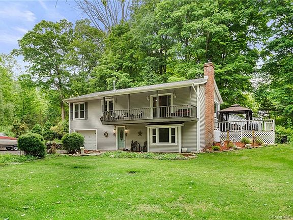 RIVER FRONT- This is your private retreat with 2,000 sf of living area on more than 6 wooded acres all fronted on the Moodus River. (Approx 1,000 feet of river frontage Adjacent property belongs to the Hidden Valley Farm Preserve. Come see this charming Hi-ranch with an open floor plan and delightful, up-to-date décor. The deck is totally enclosed and sports a lovely outdoor canopy (remains with the house for your family and pets. The detached garage is heated by oil and is perfect for extra work space. There's additional space for two cars and even a chicken coop. Many new items including; Samsung Fridge 2021, Maytag Washer 2020, New Roof 2020, Rheem Wi-Fi capable water heater 2019. All have extended warrantees.