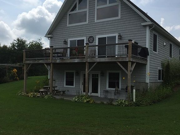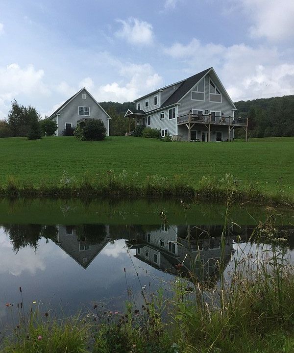 Pond, lush landscaping. Great attention to detail with tile and wood floors, granite counters, maple cabinetry, cherry and maple stairs, wrought iron railings. Open living area has cathedral ceiling and propane fireplace. Family room, bathroom, kitchenette and bedroom in walk-out basement. Views from almost every window. Low maintenance vinyl cedar shake siding,composite decking. Dream garage features 3 large bays, insulated workshop on second level, & storage on 3rd House is in Walden Vt but has a Cabot Vt address Easy access to Route 2, I-91 & I-89.