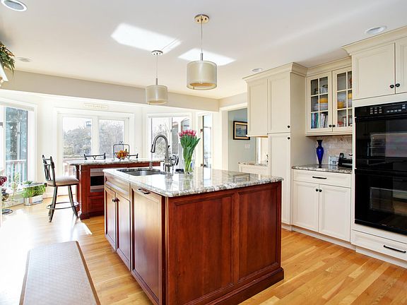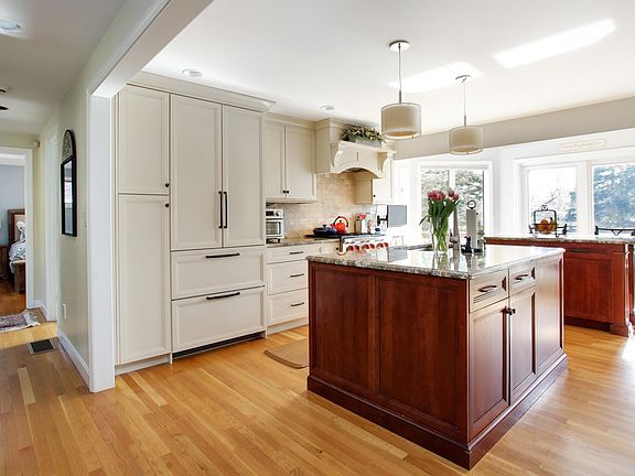 This lovely four bedroom, three bath custom home is adjacent to a beautiful 3 acre majestic Frederick Law Olmsted pond and park near the popular village of Centerville. A short distance to Covell's or Craigville Beach, the1856 Country Store for penny candy and gifts, Four Seas Ice Cream and the library and playground..The impeccable property has three levels of comfortable living and lots of natural light with the walls of windows overlooking the park. The first floor boasts a chef's kitchen, large living room with fireplace, separate dining room, a primary bedroom suite and screened porch. The top floor has a second primary bedroom with fireplace, an additional bedroom and a full bathroom, all with views. The finished walk-out lower level has a large family room, a fourth bedroom, full bath and plenty of closet space.Recent improvements include new house length deck, porch and shed, newer furnace (2017), garage doors , roof and more.There are two separate driveways to access the house; one is off of Fernbrook Lane and one is off of Pine Street.Enjoy family and friends at this serene Cape Cod oasis.