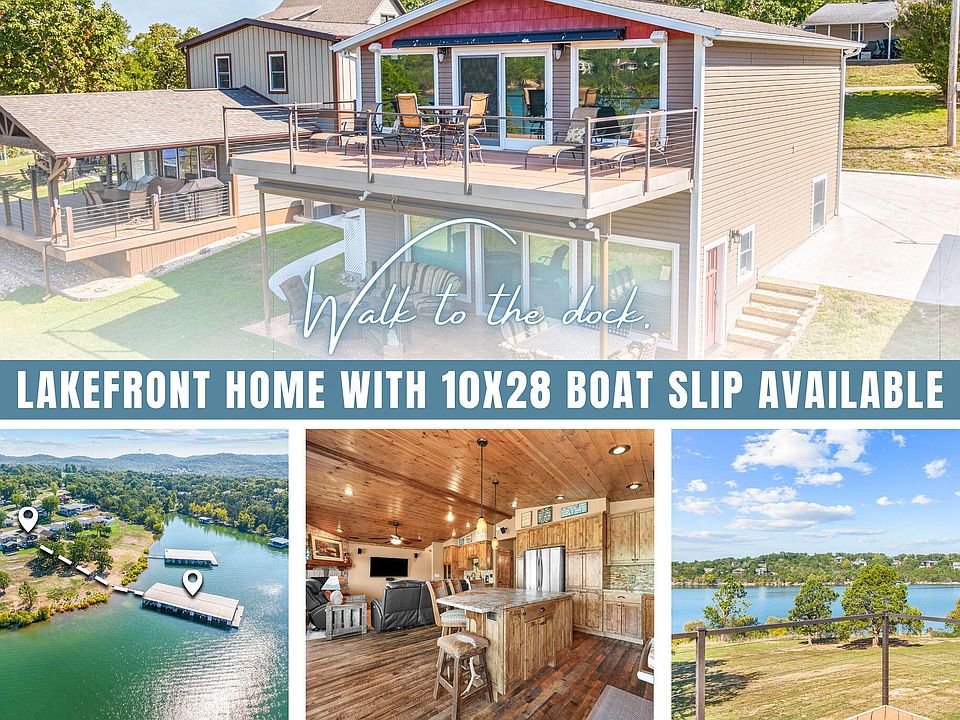Lakefront! Huge windows! Boat slip with lift available for purchase! This immaculate 3-bedroom, 2.5-bath cabin in the quiet Aunts Creek Resort offers 1,850 square feet of like-new living space with generous views of Table Rock Lake inside and outside. Step inside to find two wet bars (both with built-in ice makers), a dumbwaiter, and an open-concept layout perfect for entertaining. Enjoy stunning lake views from the upper deck, complete with a motorized awning and sun shade, or head to the lower deck where two solar shades create the perfect spot for an evening dinner outside. The golf-cart garage adds extra convenience, and the cabin sits directly across from the community pool. Just a gentle 200-foot walk down to the dock leads you to your available boat slip with lift, offered for an additional cost. Whether you're seeking the perfect weekend escape or a year-round retreat, this rare lakefront opportunity delivers comfort, convenience, and unbeatable lake lifestyle. A complete furniture package is also available, including everything as seen in the cabin, for an additional $20,000. Homes like this don't come around often--schedule your showing before it's gone!