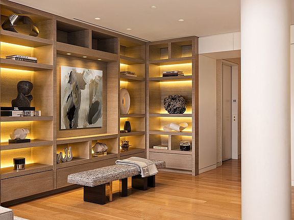 This tranquil Manhattan retreat also features multi-zone heating and air conditioning for year-round comfort, an extensive and thoughtfully outfitted oversized coat closet, additional storage rooms on each landing, as well as a utility room with a vented Miele washer and dryer.