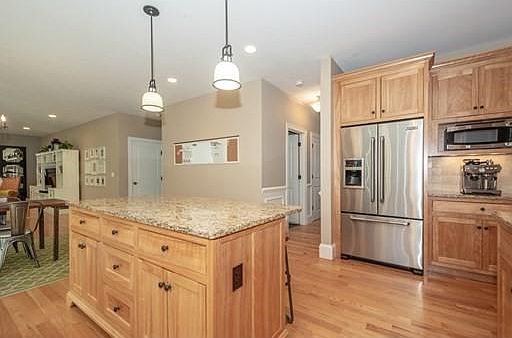 - Kit Dscrp: Dining Area, Flooring - Hardwood, Countertops - Stone/Granite/Solid, Breakfast Bar / Nook, Kitchen Island, Stainless Steel Appliances, Open Floor Plan, Recessed Lighting, Slider, Exterior Access