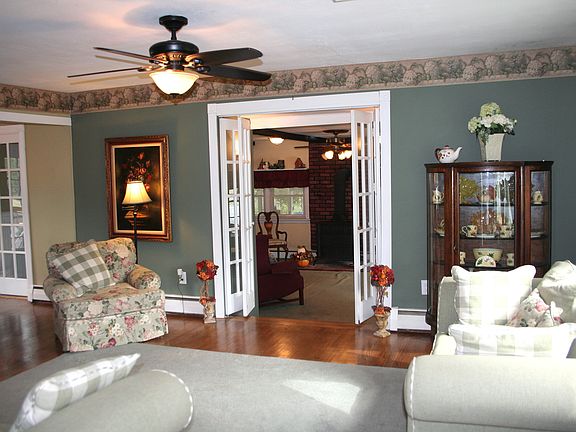 Charming ranch with tons of character and upgrades throughout! This 3, possible 4, BR ranch is far larger than appears in pictures! Entertainment options here are endless! Located on a 1.5 park-like acre setting,the home is complimented w/hardwood floors,2 updated full baths & a large great-room that could be used as an additional Master BR Suite/In-Law Suite w/private entrance.Gourmet kitchen offers granite counters, SS appliances & a built-in pantry. HWD floors compliment the living room.The full finished BSMT is quintessential for entertaining as it offers recreational rooms,ample storage & an outdoor entrance!Lovely deck overlooking park-like property to enjoy nature at its finest!Fox,Deer, Pond w/fish & storage shed in rear. Above ground pool! New Roof! Natural Gas on street!