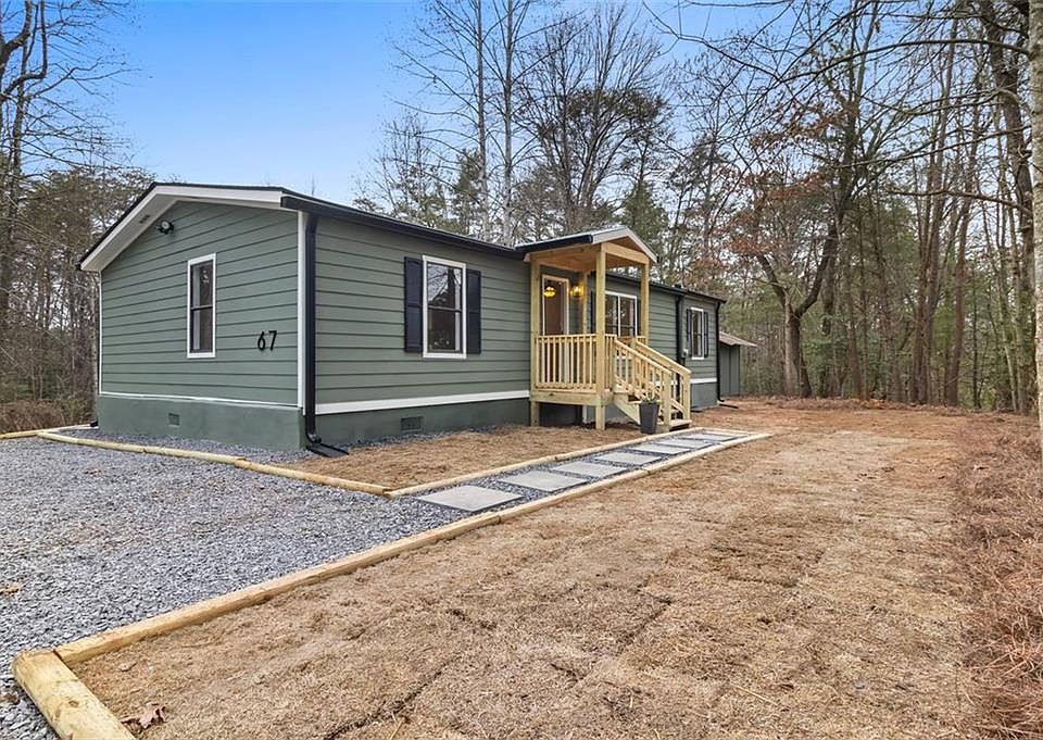 Seeking, a full time residence?, an investment or weekend get away opportunity? this mountain home is it. Nestled in a secluded 1.66-acre lot that is mostly wooded and has lots of potential. Located just minutes from downtown Ellijay, this sweet home offers serene and picturesque setting. Full renovations completed, this is a true gem. Lots of possibilities with a large, cleared backyard ready for your touch. Manufactured home on a permanent foundation, the home offers an open floor plan, large master bathroom with an extra-large tub, two secondary rooms and an extra full bathroom, two storage sheds and large open backyard. The seller is giving all new stainless-steel appliances, washer and dryer with home purchase. -Secluded mountain cabin. -60+ acres of untouched land behind the property. -Plenty of room for RVs, boats and all your toys!!! -Gated. -All electrical updated. -All plumbing updated. -Quartz countertops. -All new cabinets and vanities. -New subfloor and insulation under the home and vapor barrier. -New commercial grade waterproof LVP. -All new Sheetrock on every wall and ceiling. -New roof. -Fiber cement siding. -New AC and furnace. -Large gravel driveway. -Large open usable yard. -New decks front and back. -New light fixtures. -2 sheds. -All new doors. -New sod -Termite stations with 1 yr warranty. -Septic inspection clearance letter and pumped Please closed the gate when you leave the property. Thanks!!!