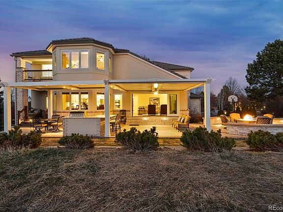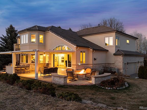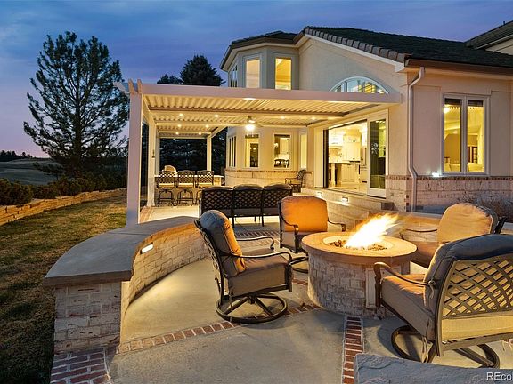 Experience country club living at its finest. Perfectly situated on the 6th fairway offering beautiful views and a lifestyle of unparalleled sophistication. This peaceful setting seamlessly blends indoor and outdoor living with a retractable glass wall system, fully screened, opening to the fabulous outdoor patio that beckons you to unwind and entertain. The motorized pergola makes it comfortable rain or shine! There is an outdoor fire pit-turns on with the flip of a switch- as well as a built-in grill & fridge for al fresco dining. Illuminated by tasteful outdoor lighting, this luxurious & peaceful oasis is perfect for enjoying Colorado's spectacular days and nights in style. The kitchen was recently renovated and is robustly equipped with two ovens, refrigerator with built-in Keurig, gas cook-top, pull-outs in most of the cupboards, appliance garage, butler’s pantry & a large walk in pantry. One oven & the fridge are controlled by the GE App. All 4 bedrooms are conveniently located on the upper level. Each bathroom upstairs was tastefully updated in 2023 with Koehler fixtures to reflect modern elegance. The primary bedroom is a retreat unto itself, with a fireplace and a private deck with Trex decking. The lavish 5 piece bath has heated floors, free-standing tub and lighted mirrors-disguised medicine cabinets with outlets inside -offering the ultimate in relaxation and comfort. The bedroom fireplace is a see through so the primary bath stays toasty! For those who love to entertain, the basement is an entertainer's dream, featuring a wet bar and approximately 700 bottle wine cellar, as well as a large family room, ¾ bath and huge storage. It was purposely configured so another bedroom could be added. The roof was recently replaced as were the Anderson windows. Frame TV is included.Nestled within this prestigious Cherry Hills neighborhood of Glenmoor, a 24/7 guard-gated Country Club, this home offers more than just a residence—it offers a lifestyle like no other.