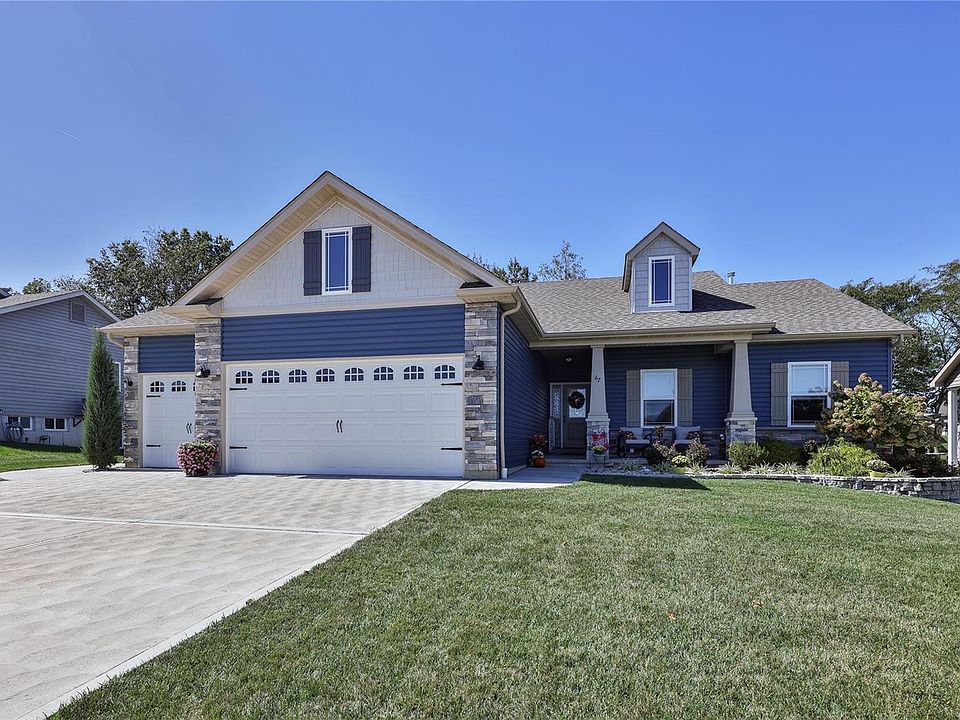 The One With...simply everything...concrete in-ground pool and screened-in porch! No homework here except to start making memories. A pristine 3 years young craftsman ranch hosts 3 bedrooms, 2 baths and 3 car garage to just scratch the surface. Luxury vinyl planks grace the floors throughout with 9' main floor ceilings. Soaring vault in family room/kitchen and coffered ceiling in primary suite. Kitchen boasts custom quartz, stylish backsplash, 42" cabinets, stainless appliances, under cabinet lighting, and designated pantry. The elegant light fixtures, recessed lighting, gas fireplace with full brick facade floor to ceiling and hearth are sure to please. No expense was spared: spindled wrought iron railing to lower level, bay window in primary suite, Hunter Douglas custom blinds, main floor laundry with cabinet and counter, lush landscaped lot, in-ground sprinkler, maintenance free gutters, aluminum fencing and much more...ask to see the feature sheet. Don't miss this rare opportunity.