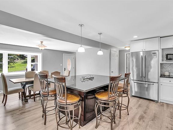 Fantastic updates! New kitchen 2019 with center island and abundance of counter space and cabinets, stainless appliances, granite counters, built-in pantry, open to dining room. Roof 2019, Furnace 2017, A/C 2019, Luxury Vinyl Plank Flooring 2019, Baths 2019/2021, Deck 2021, Heated Pool 2021! The living room is amazing size for entertaining with gas brick fireplace, and single french door to maintenance free deck and level back yard. Lower level offers a finished game room, office area, full bath, laundry, and two storage rooms. New windows in kitchen and living room 2019, new bay window 2023. New exterior doors 2022. Two car garage with extra wide concrete driveway. Great corner lot with above heated ground pool and storage shed. Convenient location to shopping, interstates, walk to the schools!