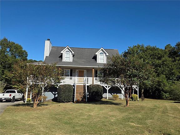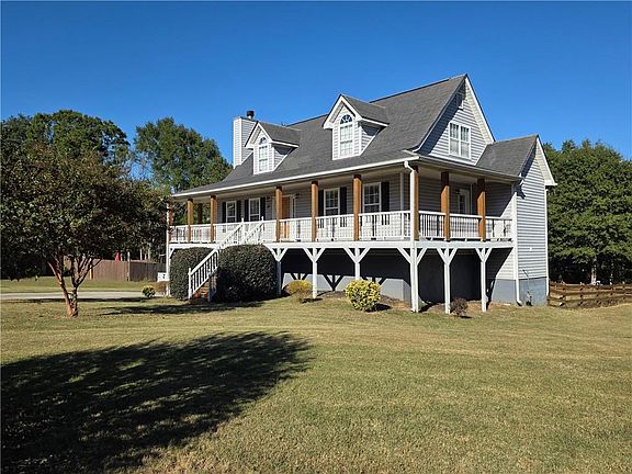 Great Country Living. Almost one-acre lot with a beautiful wrap around front porch and fenced in back yeard. Updated kitchen with subway tiles, solid surface, and gas appliances. Living room with a central fireplace, along with window blinds throughout the house. Master on main with access to wrap around porch and 2 additional bedrooms and full bath upstairs. Laminate flooring throughout main level and finished basement area. Basement is finished with a partially completed full bath. The basement can easily be completed for a fourth bedroom or second master. Don't miss this nice home. Located in a quite neighborhood with NO HOA... Will not last long.