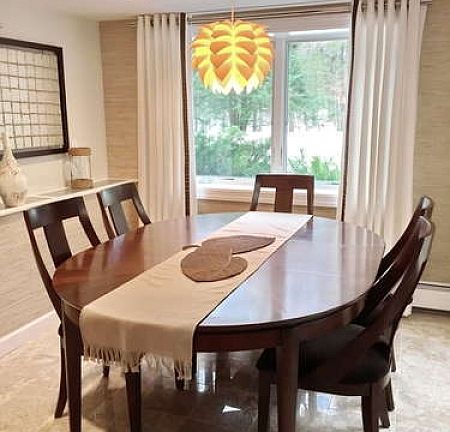Wood-burning fireplaceLarge islandModern eat-in kitchenSecluded landscaped yardIndoor-outdoor livingOutdoor storageDedicated dining room
