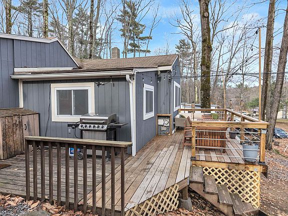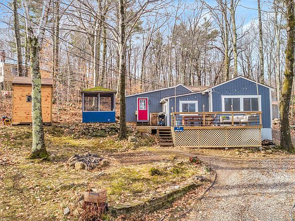 And the winner is...whoever buys this beautiful year-round home in the Sawyer Lake community! You get three layers of enjoyment with this home. First, the location affords plenty of recreational opportunities--the lake offers boating (no restrictions), fishing, swimming at 6 beaches, and a 1.8-mile loop for walking or jogging, and direct access to extensive snowmobile trails; the Sanborn State Forest is just up the street; and you're close to skiing and the Gilmanton Pub! Second, just outside your front door you'll have a 10x20 deck looking out at the lake for open-air parties or relaxation with a Pale Ale and a paperback, as well as a shed for tinkering or gardening, a screen house for comfort (currently holds a small hot tub), and a patio out back if you want to relax with a little more privacy and watch Rover patrol the spacious yard. And third, as you step inside the house you'll feel like you were wrapped in a warm, cozy blanket. The kitchen looks like Martha Stewart just passed through, and the living room features a wood stove, fieldstone hearth & chimney, warm pine floors, large windows facing the lake, and it opens to a comfortable dining room with pass-through to the kitchen. The main bedroom is plenty big, the second bedroom would make a great WFH office, and the bathroom is beautifully updated as well. Cathedral ceilings give this home a wonderful, open feel, and 3 heat sources and ceiling fans guarantee your comfort. Will you be the lucky winner this time?