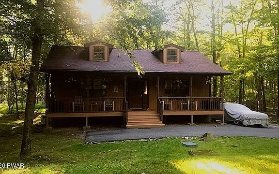 Look at this lovely Lake Wallenpaupack lake house! Privately situated on a deep wooded lot in Indian Rocks. This solid home shows real pride of ownership with meticulous attention toupdates and home maintenance. Cabin-style home features a cozy covered porch, 2 spacious bedrooms & 2 fully updated bathrooms. PLUS, a truly warm and so organized bonus lower level family room ready for all those grandkids! You'll feel warm and secure knowing that there are so many home inprovements such as a full-home generator connected to water, heat, sump pumps and septic, newer roof, paved driveway, hardwood flooring and a large outside storage shed. Spacious deck overlooking private back yard & firepit area. Granite counters, custom cabinets, hardwood & tile floors. You've been waiting for this gem