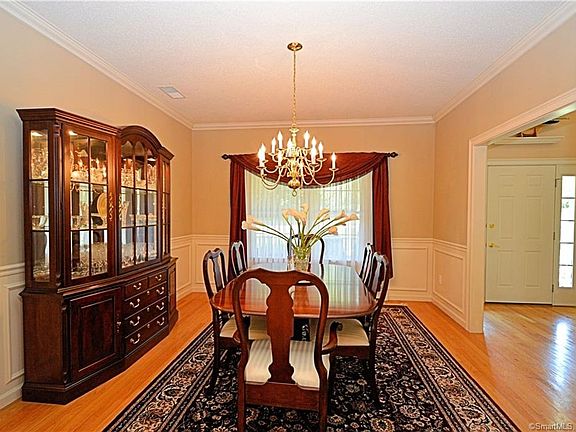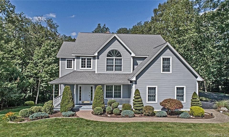 Pristine custom colonial with views of Raymond Brook and walking distance to the Air Line Trail. Welcoming covered front porch enters into the two story foyer with balcony staircase. Center brick fireplace is the focal point of the formal living area and kitchen. Hardwood and crown molding throughout. Kitchen with, breakfast nook, SS appliances, granite countertops and a built-in computer station. Cathedral master bedroom with private views and a large walk-in closet with the bath that includes a dual sink vanity, and whirlpool tub. The huge deck overlooks an amazing back yard. Perfectly nested on just over an acre in a great neighborhood.