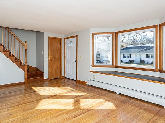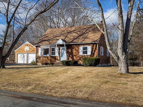 Wonderful family Cape style home located on a very private 1+ acre lot. Home features a large living room w/ hardwood floors, Eat in country kitchen w/ tile floor,full tiled bath w/ tub/shower, Two 1st floor bedrooms w/ hardwood floors, and large closets. Second floor has 2 additional ample sized bedrooms w/ great storage space, hardwood floors, full bath w/ stall shower. Basement is a walk out w/ finished space. Newer boiler, roof, replacement windows, and 2 car attached garage. This home has been lovingly cared for by the same owners for over 60 years.Buyer was furloughed from his employment and loan was denied , which is why this one is back on the market.