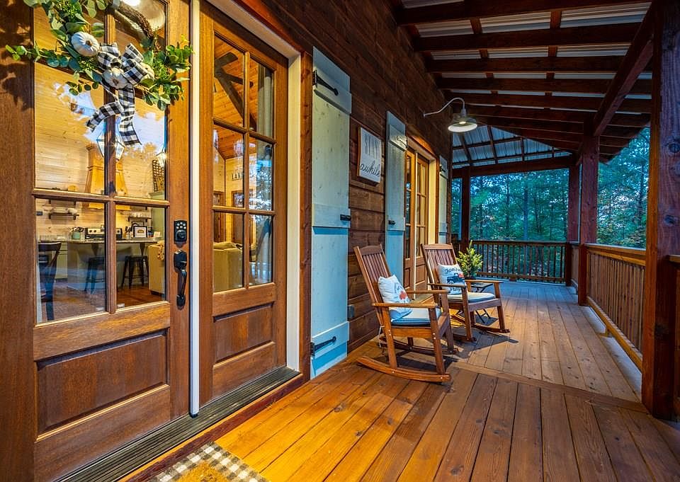 Acadian Cottage has it all: a great location in Timber Creek Trails South, fabulous use of materials & finish out & a stellar rental history. This 1 bedroom, 1 bath cabin is sited on approx. 1.14 wooded acres & is minutes to the lake, state park, dining venues, wineries, brew pubs & retail. Open concept light filled great room with vaulted ceiling, exposed beams & floor to ceiling stone, gas log fireplace. Kitchen with slab granite, ss appliances, undermount sink & breakfast bar. Spacious bedroom & grand bath featuring dual sinks. soaking tub & oversized tiled shower. Over 900 square feet of porches & decks, outdoor FP, hot tub, fire pit, horseshoes, corn hole. More!