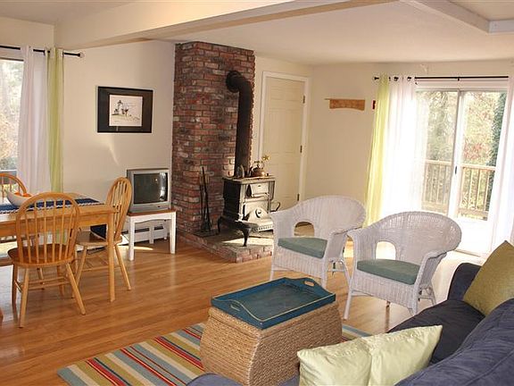 Charming and efficient! This two bedroom ranch is nestled in the woods of West Falmouth down a winding country lane. Far away and yet so close to Old Silver Beach, West Falmouth Harbor and the Village center. Enjoy the warmth from the wood burning stove, the light spilling in from all the energy efficient sliding doors and the privacy of the wooded half acre lot.