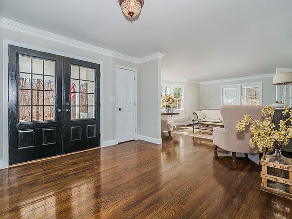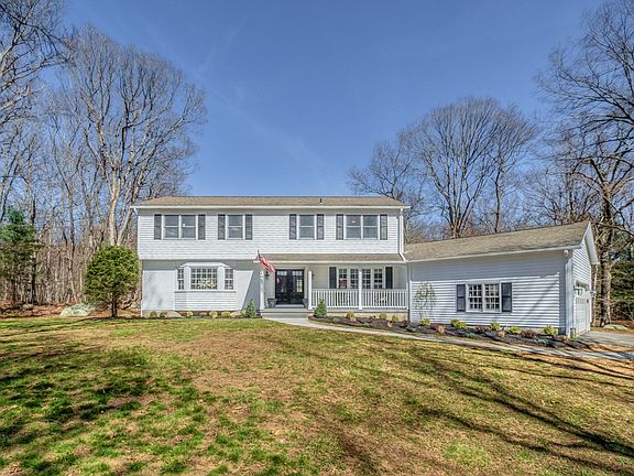 Sitting up among 2+ acres of towering trees, sprawling lawns and professional landscaping, find one of the most impressive top-to-bottom renovations in town. This four bedroom, three-and-a-half bath colonial has been creatively expanded & upgraded to include a completely open first floor layout with new hardwood floors, designer lighting, and trendy color palette. The gourmet Kitchen is stunning, with gorgeous oversized island (with breakfast bar, prep sink, glide-out microwave, & wine cooler), white quartz countertops (like Cararra marble, but better!), signature hardware, and a high-end GE appliance package with 5+ burner gas range & pot-filler. The kitchen seamlessly flows into the formal dining space, living room, and family room, and offers French doors to the rear deck, yard, and gravel fire pit for optimal indoor/outdoor entertaining. The vaulted ceiling, exposed beam, and whitewashed wood-burning fireplace are focal points of the cozy Family Room. Don't miss "the nook", a perfect office, play space, or reading room. A mudroom with stone herringbone tile floor, closet, marble Powder Room, food Pantry & garage access is the perfect place for shoes & storage. All bedrooms are located on the second floor in an optimal layout: two bedrooms share a "jack & jill" style bath, a third spacious bedroom has access to the full hall bathroom, and the full laundry room is conveniently located between them. At the end of the hall, find an enviable Master Bedroom Suite with Southern exposure, large walk-in closet, and spa-like bathroom with wall-to-wall shower with French splash and dual shower heads. The basement and attic offer plenty of storage space, and the two-car garage can comfortably fit larger vehicles. A fresh coat of white exterior paint, black shutters, and rocking-chair front porch complete this picture-perfect home in a wonderful setting. NOTE: Their last beautiful Sandy Hook home took an offer in just 6 days, don't let this one pass you by!!
