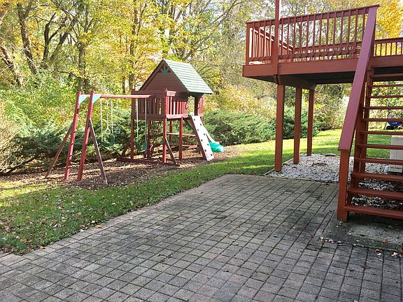 Great home situated in a quiet cul-de-sac and peaceful neighborhood. This beauty features 3 spacious bedrooms with plenty of closet space, 1.5 bath, cathedral ceilings in the living and dining room making it feel bright, spacious and inviting. Kitchen offers lots of cabinet space and dining area. Dining room opens up to a fabulous large deck that overlooks the playground and your level lot backyard. You will love your private patio with waterfall/pond ideal to relax and unwind from the day. The family room is located in the completely finished lower level, which also has an additional bonus room that can be used for private office, guest room or man cave. Multiple updates include newer roof with architectural shingles installed in 2011, double pane windows, newer mechanicals, new carpeting and hardwood floors. Large storage shed for your gardening lawn equipment. Energy efficient Mitsubishi mini-split systems with heat pump on both floors. Move right in!