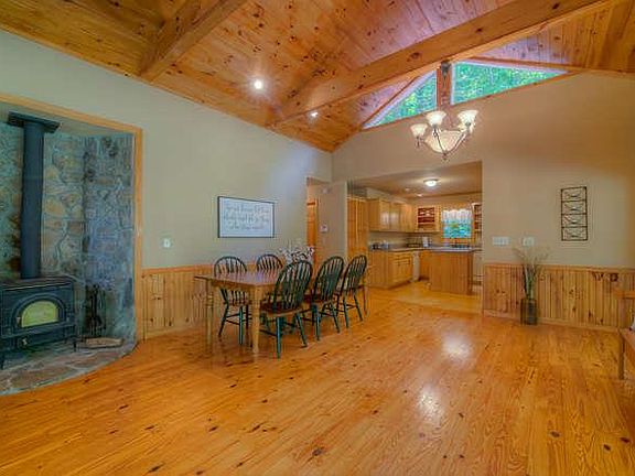 A slice of heaven far from crowds! 3.42 ac creek front wooded lot w/plenty of open sunny space is this pristine FURNISHED 2/2 mountain home w/small guest cottage w/BA! New roof, freshly stained cedar siding & porches. Who won't love the fun bunks on the screened porch for the experience of sleeping outside...well almost outside. Great Room wood burning stove inset into a stone wall surround will be appreciated in the the cooler mountain temps. MBA has a large vanity & is conveniently separated from shower & stool. Gleaming wood ceilings, floors, trim & doors enhance the drywall & pull the beauty of the natural setting inside. Let the sound of the creek bring peace to your day.