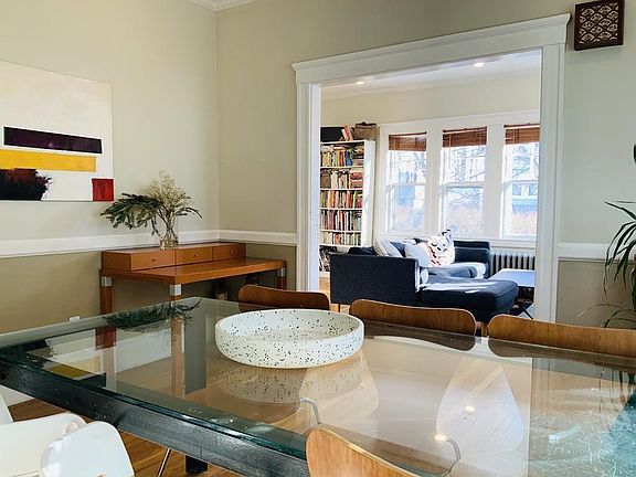 Steps to TUFTS from this lovely 3 bed/3 bathroom single family in a quiet neighborhood. Fireplace in living room opens to dining room and kitchen with granite counters. 2 bedrooms with a full bath finish the main floor. Wonderful MASTER SUITE on the 2nd floor includes jacuzzi tub, separate shower, 2 walk-in closets and skylight Finished basement with full bath and WASHER/DRYER offers additional family/bedroom and storage space. Off-street parking for 2/3 cars. Large, fenced yard for bbq and enjoying nature. Pets negotiable. Available 02/01/2020.