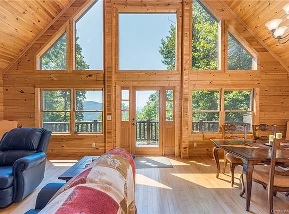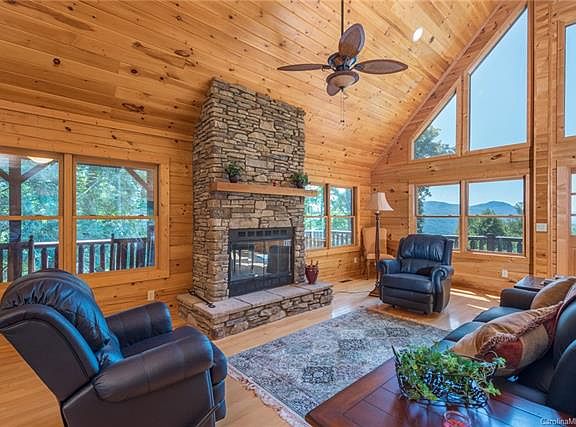 Perched atop Gateway Mountain, a private gated community, you'll enjoy long-range mountain views including a portion of Lake Lure in the distance. This stunning log cabin nestled on 4 acres offers three-level living, with each of the three bedrooms on a different level with access to its own bathroom. Master bath includes a walk-in shower with body jets you just can't resist! Have a fire in the great room that boasts an open floor plan with cathedral ceilings, stainless steel appliances in the kitchen, and a mother-in-law suite downstairs with a separate kitchen. Park in the attached garage and walk right into your gorgeous cabin on the mountain. Relax outdoors on your rocking chair and listen to the sound of your own private stream and waterfall. This is the reason people choose Western North Carolina! Open to any and all offers - seller is highly motivated!