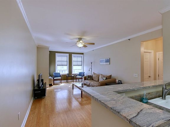 Rare, serene, and large, this Canal front 905 sq. ft. condo with great water views makes you feel like you are at a resort. Great views from all rooms. Home has very open layout and 9 ft. ceilings. Luxurious large bath has deep soaking tub, dual sinks, and stall shower. More storage than any other one bedroom. Easy commute to NYC via onsite ferry and shuttle bus to Path and Light Rail. Gated community with exceptional amenities including 2 heated pools, tennis, basketball, playground, and new fitness center with saunas. One indoor heated parking spot included. Lots of street parking for your guests.
