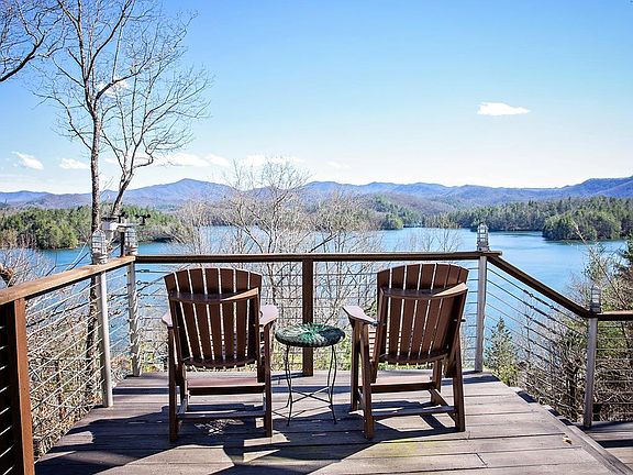 A WOW REDUCTION! What a setting with this Italian Villa sitting on 1.7 acres with breathtaking views of Lake Santeetlah & Surrounding Mountains sitting. Architecturally designed combining iron, wood & glass to utilize all the natural light & creates a stunning visual impact as you walk inside. Main level living/dining area with soaring cathedral ceilings & stone fireplace with large windows positioned for maximum impact for views of the lake and mountains. Kitchen has granite countertops, stainless ,& large walk in pantry. Decks on 2 levels both covered and uncovered with hot tub and greenhouse, fire ring. Upstairs primary bedroom suite. Lower level features 2 more bedrooms, 2 bathrooms, tv room. 2 car garage with circle driveway, plenty of parking. A true Custom home - view 360 tour