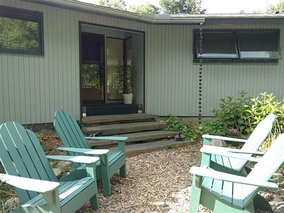 Walk up the wide garden path to Goshen stone steps, into the gracious entry foyer. Lots of windows and light fill the living room and sunken dining room, 15'x30' ideal for entertaining, dinner parties and large gatherings of friends and family. To the left is the spacious kitchen with custom cherry cabinets, Corian counter tops, gas stove top, two ovens, one is convection, eat-in area, dishwasher, microwave. Off the kitchen is the large family room featuring a working fireplace and hardwood flooring. A sliding glass door leads out to the deck.To the right of the entry foyer is the bedroom wing: master bedroom with ensuite bath and deck, three large bedrooms, full bathroom with two sinks. Super efficient Buderus oil baseboard heating system. Stove top and dryer are propane. .Beautifully maintained organic perennial gardens with bonus spaces for vegies. Black walnut grove for nuts and profit. Chicken house is included.