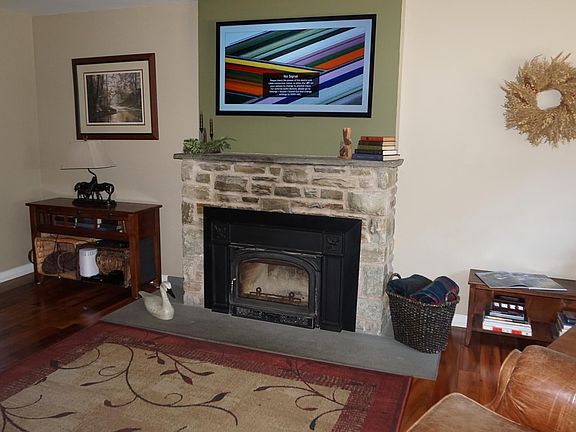 - Fireplace features: Stone, Wood Burning, Insert
