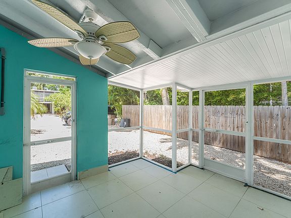 **Outdoor Paradise** Freshly planted palms of all varieties, plus papaya, banana, and pineapple plants surround the home for your own tropical oasis, which you can also enjoy from the comfort of the screened front porch. Fully fenced backyard with walking gate on one side and double gate opposite is perfect for your fur babies or parking your boat!