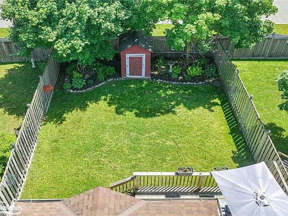 Discover this lovely 2-bedroom brick bungalow located in the highly popular Westridge area of Orillia. This home features an eat-in kitchen with ample cabinets, a combined living/dining room with a walkout to a deck that overlooks a beautifully manicured, fenced backyard with gardens, a shed, and mature trees for privacy. The main floor includes two bedrooms, including a spacious primary bedroom, and a 4-piece bathroom with tile flooring, a tiled tub surround, and a linen closet. The bright, finished basement offers a family room with a fireplace and a separate multi-purpose room accessed by French doors, along with a 3-piece bathroom with tile flooring. Enjoy direct access from the foyer to the single car garage. This well-maintained home includes updated shingles, a new gas furnace (2 years old), hardwood floors, central air conditioning, and central vacuum. Conveniently located near shopping, the university, recreation center, and movie theatre, this charming bungalow offers both comfort and accessibility.