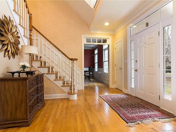 Close to Town and nestled at the end of a quiet cul-de-sac, sits this elegant custom-built colonial. Spacious with its 4 finished levels of living space, the home offers 4-5 bedrooms with 4 Full Baths and has all the space one could hope for while maintaining a comfortable and practical floor plan for today's lifestyle. Upon entry, the extensive rich millwork and details of this home are evident; raised panel wainscoting, transom and Palladian windows, columns and hardwood floors throughout. All rooms are generously sized and effortlessly flow into one another. The Eat-in Kitchen is bright and offers ample cabinetry, granite counters with high-end Wolf and Bosch stainless steel appliances. The Great room is spacious and has a wood burning fireplace and leads to the backyard deck. There is also a three-season Sunroom off the Kitchen that opens to the deck and patio area on opposite side. On the second level there are 3 Bedrooms, a bonus room and the Master Bedroom suite which features 2 walk-in closets, Master Bath and a private Office or Sitting room with its own fireplace. The Third floor offers the perfect au-pair or guest suite with bedroom, sitting room and full bath. The finished lower level offers an additional 1,200 sq ft. Newer on-demand whole house generator, 4 fireplaces, central vac, security system, surround sound. Yard is level with private backyard and offers plenty of room for in-ground pool. Conveniently located just a few minutes to the Green/commuter links.